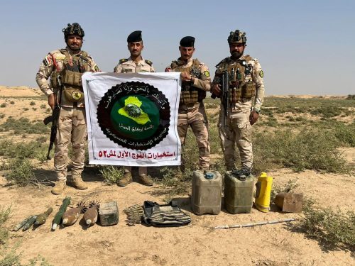 واضاف، انه “مفارز الاستخبارات العسكرية تمكنت من ضبط كدس للعبوات والاعتدة يحتوي على( 61 ) صاروخ من نوع SPG9 ضد الدروع والاشخاص ونمساوي و ( 10 ) عبوات ناسفة محلية الصنع ومختلفة الاشكال و ( 4 ) مساطر تفجير و ( 3 ) اجهزة نوكيا و ( 2 ) شريط احادية 12.5 و حاوية عتاد 12.5 و درع و ( 2 ) ناظور هاون”.