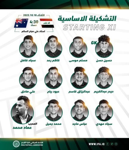 تشكيلة منتخبنا الشَبابي أمام أستراليا ضمن تصفياتِ كأس آسيا
