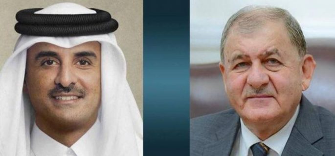تلقّى الرئيس عبد اللطيف جمال رشيد، اليوم الأربعاء ، اتصالاً هاتفياً من أمير دولة قطر تميم بن حمد آل ثاني فيما بحث الجانبان العلاقات الثنائية المشتركة بين البلدين.