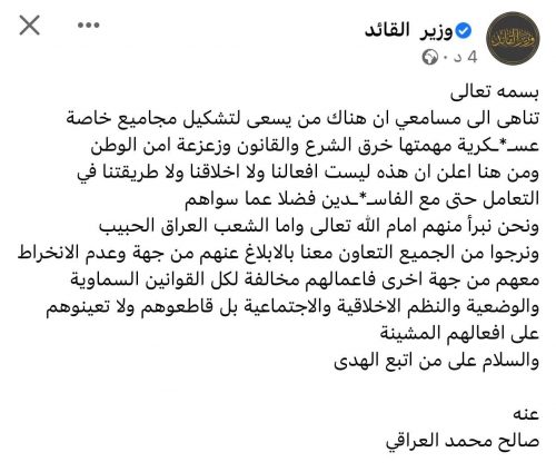 مقتدى الصدر يتبرأ من مجاميع عسكرية مهمتها خرق الشرع والقانون