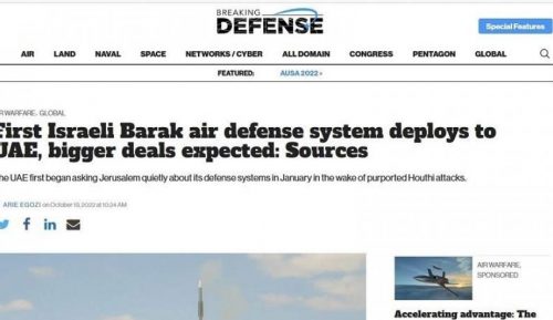 وقال موقع “Breaking Defense” إن نسخة من نظام الدفاع الجوي “باراك” تم نشرها في الإمارات بموجب اتفاقيات التطبيع بين أبوظبي وكيان الاحتلال، موضحا أن هذه الخطوة سيتلوها نشر المزيد من الأنظمة.