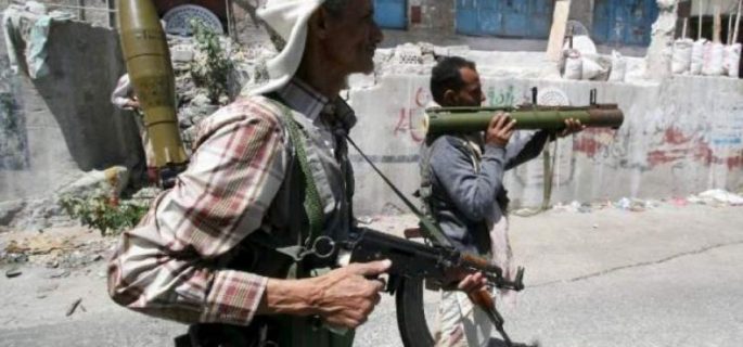 وقالت مصادر ان أربعة قتلى سقطوا فيما جرح خمسة آخرين في اشتباكات بين حملة من القوات الأمنية و مسلحين عسكريين يتبعون قائد العصابات الشهير في تعز غزوان المخلافي المسنود من قيادات عسكرية نافذة في المدينة .