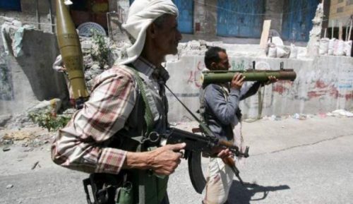 وقالت مصادر ان أربعة قتلى سقطوا فيما جرح خمسة آخرين في اشتباكات بين حملة من القوات الأمنية و مسلحين عسكريين يتبعون قائد العصابات الشهير في تعز غزوان المخلافي المسنود من قيادات عسكرية نافذة في المدينة .
