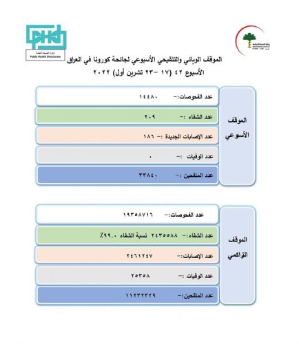 الموقف الأسبوعي لفيروس كورونا في العراق