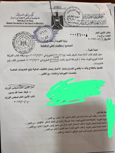 وادناه وثيقة كشفت عنها امانة بغداد تخص الموضوع: