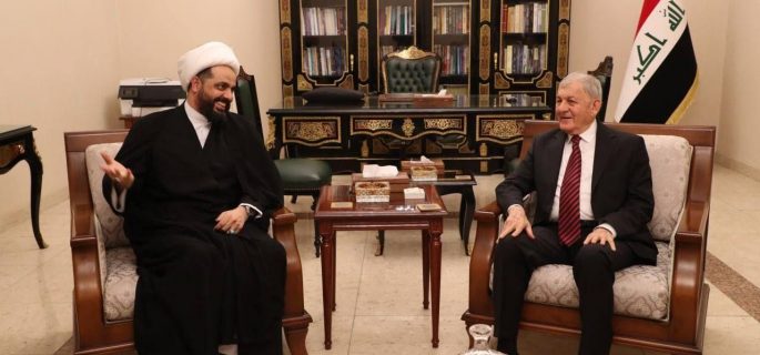 بحث رئيس الجمهورية عبداللطيف رشيد، والأمين العام لحركة عصائب أهل الحق قيس الخزعلي، الثلاثاء، جهود تشكيل الحكومة الجديدة.