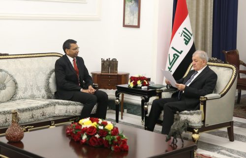 من جانبه، أكد رئيس الجمهورية، “رغبة العراق في الارتقاء بمستوى العلاقات مع الهند وتوسيع آفاق التعاون المشترك على الصعد كافة خدمة للمصالح العليا للبلدين”. انتهى