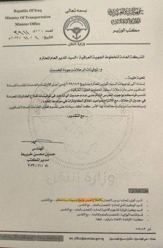 وزير النقل يصدر توجيهات تخص توقيتات رحلات الخطوط الجوية