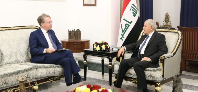 فيما حمّل الرئيس عبد اللطيف جمال رشيد، المستشار باتريك دوريل، “تحياته وتقديره الى الرئيس ايمانويل ماكرون”، مؤكّداً أن “العلاقة مع فرنسا متميزة ونطمح لتعزيزها في المجالات ذات الاهتمام المشترك خصوصاً في مجالات الأمن ومكافحة الإرهاب والتعاون الاقتصادي في قطاعات الطاقة والاستثمار والعمل المناخي، وبما يحفظ السيادة ويحقق مصالح الشعبين الصديقين”.
