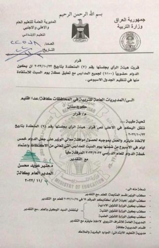 بالوثائق..نص قرار التربية بشأن عطلة السبت