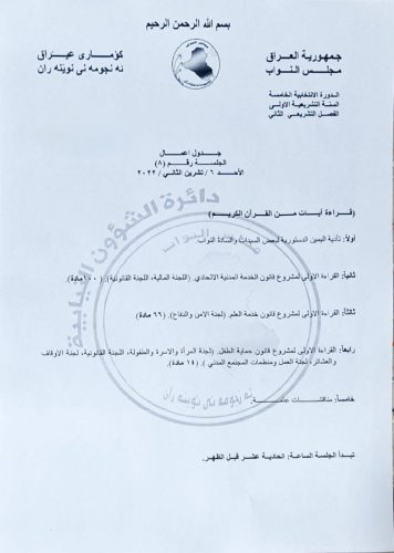 البرلمان ينشر جدول أعمال جلسة الأحد المقبل