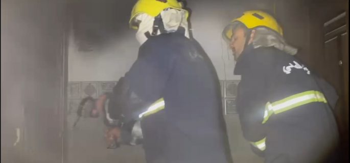 وأضافت أن “فرق الدفاع المدني نفذت عمليات الاقتحام المباشر والدخول وسط البناية المحترقة وإخراج المصابين والمحتجزين من العوائل مع إجراء الإسعافات الأولية والإنعاش الرئوي للمختنقين منهم نتيجة كثافة الانبعاثات الدخانية مع تأمين نقل الحالات الحرجة إلى المستشفى بالتزامن مع تنفيذ عمليات الإخماد والتبريد لتنهي فرق الدفاع المدني أعمالها دون تسجيل خسائر بشرية”.