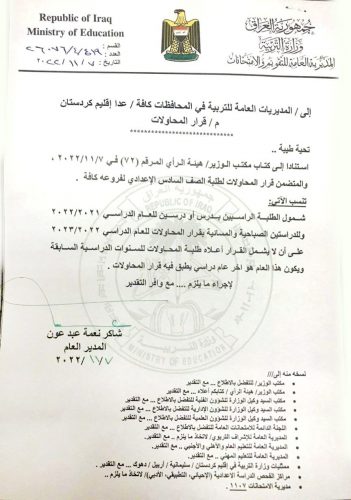 بالوثيقة : التربية تعلن تعليمات قرار (المحاولات) لطلبة السادس الاعدادي