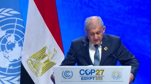 وقال رشيد في كلمة له خلال مؤتمر قمة المناخ (cop 27) إن “التحدي الأبرز الذي نواجهه في العراق ملف المياه”، لافتا الى أن “بلاد الرافدين تعاني من شح المياه وأن مؤتمر المناخ يشكل علامة مهمة”.