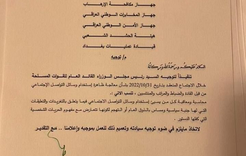 بالوثيقة.. السوداني يوجه بمعاقبة الضباط والمنتسبين ممن يسيئون استخدام مواقع التواصل الاجتماعي