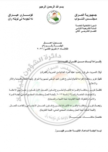 البرلمان ينشر جدول أعمال جلسة الثلاثاء