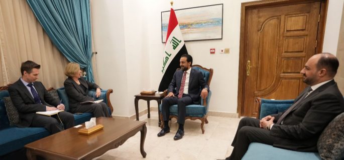 بحث رئيس مجلس النواب محمد الحلبوسي، الثلاثاء، مع سفراء ثلاث دول دعم العراق في ستة مجالات.