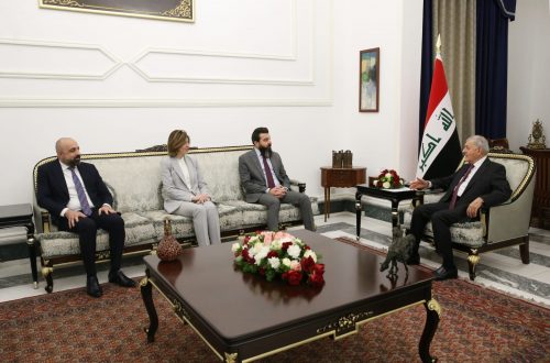 وذكر بيان لرئاسة الجمهورية، أنه “في مستهل اللقاء، قدّم أعضاء الوفد تهانيهم ومباركتهم للرئيس بمناسبة انتخابه، متمنين له الموفقية والنجاح في مهامه، معربين عن أملهم بدعمه لمطالبهم في حصول المكون المسيحي على حقوقه في العراق”.