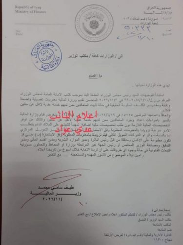 بالوثيقة : المالية تصدر اعماماً جديداً تمهيداً لتثبيت جميع العقود