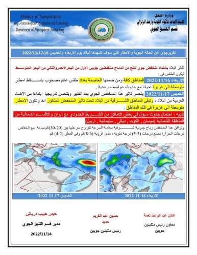 منخفض جوي وأمطار غزيرة واحتمالية حدوث سيول