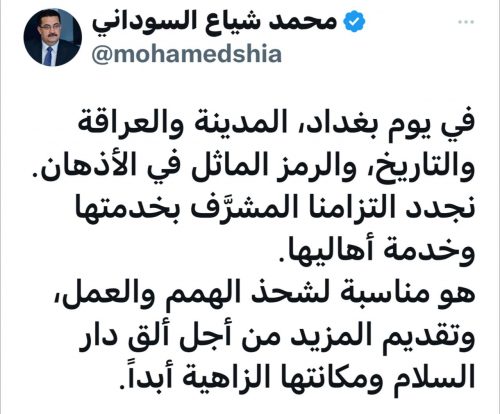 السوداني مغرداً: نجدد التزامنا بخدمة بغداد وأهاليها
