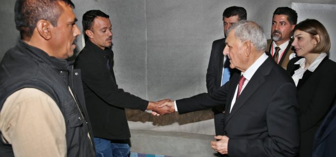 وأكد رئيس الجمهورية بحسب البيان، أنه”سيعمل مع الجهات الحكومية لإزالة المشاكل والمسائل التي تواجههم، والتنسيق من خلال العمل المشترك مع حكومة إقليم كردستان لإيجاد الحلول الناجحة لما يعانيه النازحون في المخيم وباقي مخيمات النزوح”.