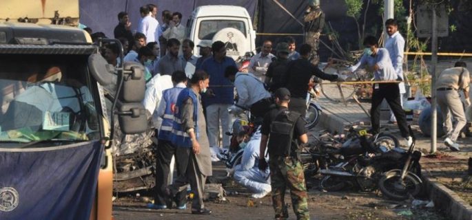 ونقلت وكالة “رويترز” عن مصادر أمنية أن 15 عنصرا من الشرطة من بين المصابين، وأن التفجير نفذه انتحاري بعبوة ناسفة بالقرب من موقع للتطعيم ضد شلل الأطفال كانت تحرسه الشرطة.