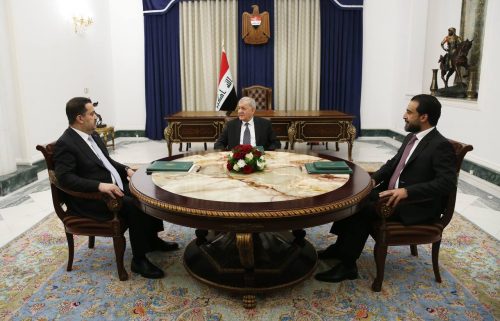 عقدت الرئاسات الثلاث، اليوم الخميس، في قصر السلام ببغداد اجتماعاً ضم رئيس الجمهورية عبد اللطيف جمال رشيد، ورئيس مجلس الوزراء محمد شياع السوداني، ورئيس مجلس النواب محمد الحلبوسي.