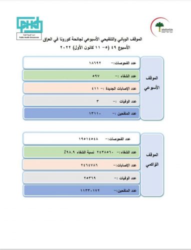 الموقف الوبائي الأسبوعي لكورونا في عموم البلاد