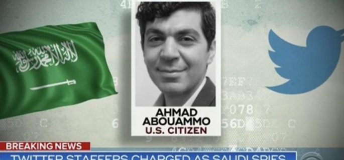 وقال ممثلو الادعاء إن أحمد أبو عمو المدير السابق في شركة تويتر أدين بالتجسس لصالح السعودية، عن طريق مشاركة بيانات مستخدمين على مدى أعوام وتعريض المستخدمين للمقاضاة المحتملة، وقد حُكم عليه بالسجن ثلاثة أعوام ونصف في الولايات المتحدة.
