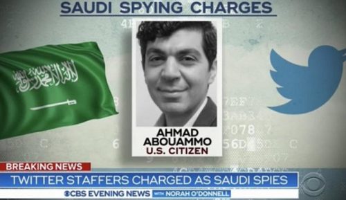 وقال ممثلو الادعاء إن أحمد أبو عمو المدير السابق في شركة تويتر أدين بالتجسس لصالح السعودية، عن طريق مشاركة بيانات مستخدمين على مدى أعوام وتعريض المستخدمين للمقاضاة المحتملة، وقد حُكم عليه بالسجن ثلاثة أعوام ونصف في الولايات المتحدة.