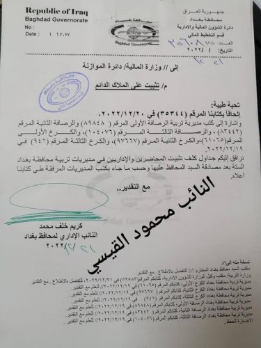 إنجاز الكلف المالية الخاصة بتثبيت المحاضرين في بغداد