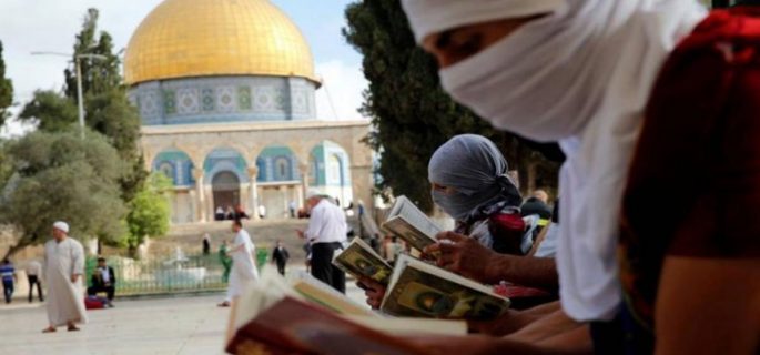 وأطلق المرابطون في المسجد الأقصى المبارك، نداءات لعائلات القدس وأهالي المدينة كافة بضرورة الحشد في المسجد المبارك، وتكثيف الوجود فيه لحمايته من المستوطنين”.