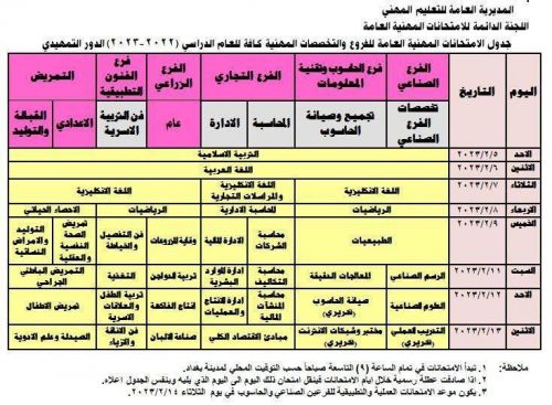 وزارة التربية تنشر جدول الامتحانات التمهيدية المهنية العامة للفروع والتخصصات كافة