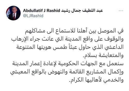 رشيد : سنعمل مع الجهات الحكومية لإعادة إعمار الموصل وإكمال المشاريع