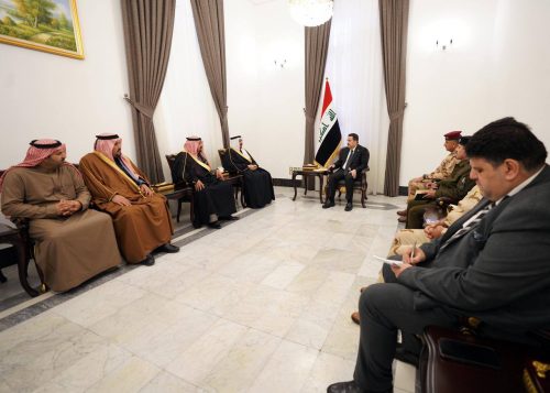 وثمن الوفد وفقا للبيان، المواقف النبيلة لرئيس مجلس الوزراء، لسرعة الاستجابة، واتخاذ الإجراءات الأمنية اللازمة، تجاه حادث استشهاد الشيخ سهيل النجم أحد شيوخ قبيلة شمّر، في حادث إرهابي جبان”.