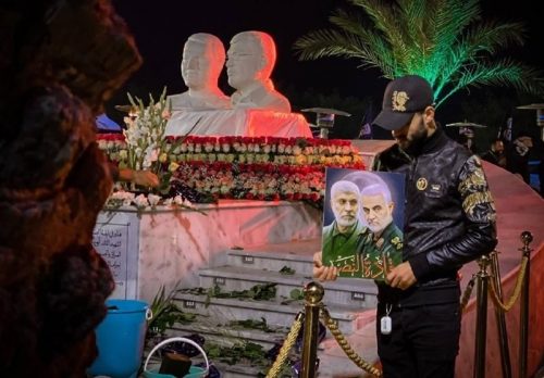 شهد مطار بغداد الدولي، اليوم الاثنين، توافد المئات من أنصار الحشد لإحياء ذكرى الاغتيال الفريق قاسم سليماني و نائب رئيس هيئة الحشد الشعبي أبو مهدي المهندس بضربة جوية أمريكية.