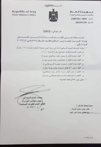 بالوثيقة : السوداني يصدر أمراً ديوانياً بترقية عدد من الضباط والرتب