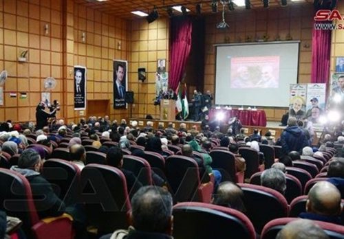 إحياءً للذكرى السنوية الثالثة لاستشهاد الفريق قاسم سليماني قائد قوة القدس في الحرس الثوري وأبو مهدي المهندس نائب رئيس هيئة الحشد الشعبي ورفاقهما، أقامت فصائل المقاومة الفلسطينية اليوم مهرجاناً خطابياً في المركز الثقافي العربي بالميدان في دمشق.