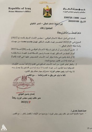 بالوثيقة : السوداني يوجه باستمرار عمل نبيل جاسم رئيسا لشبكة إعلام العراق