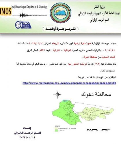 هزة أرضية تضرب محافظة دهوك