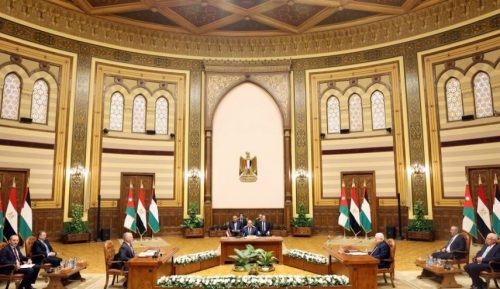 وأكد الرئيس المصري عبد الفتاح السيسي، والملك الأردني عبد الله الثاني، ورئيس السلطة الفلسطينية محمود عباس، خلال اجتماعهم على ضرورة الحفاظ على الحقوق الفلسطينية المشروعة واستمرار جهودهم المشتركة لتحقيق السلام الشامل والعادل والدائم على أساس حل الدولتين، الذي يجسد الدولة الفلسطينية المستقلة وذات السيادة على خطوط الرابع من يونيو 1967 وعاصمتها القدس الشرقية، وفق القانون الدولي وقرارات الشرعية الدولية ذات الصلة ومبادرة السلام العربية.