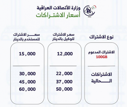 الاتصالات تنشر قائمة بأسعار اشتراكات خدمة الإنترنت