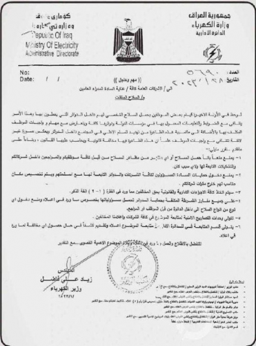 بالوثيقة.. وزارة الكهرباء تصدر تعليمات بشأن دخول حمايات المسؤولين والسلاح لدوائرها