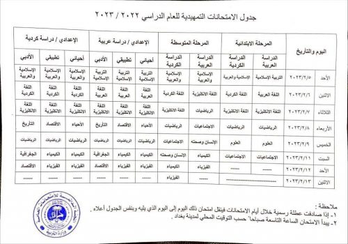 التربية تُعيد نشر جدول الامتحانات التمهيدية للطلبة الخارجيين