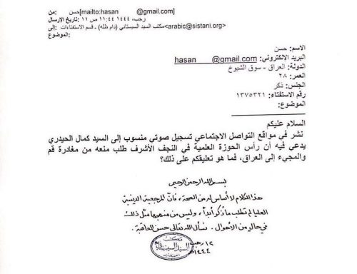 بالوثيقة.. مكتب السيد “السيستاني” ينفي كلام “الحيدري” بمنعه مغادرة قم المقدسة