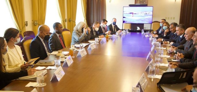 وقال المتحدث باسم وزارة الخارجية أحمد الصحاف في بيان تلقت*الرأي* الدولية نسخة منه، إن “نائب رئيس مجلس الوزراء وزير الخارجية فؤاد حسين والوفد المرافق له التقى مع نائب وزير الخزانة الأميركية والي أدييمو ومساعد وزير الخزانة اليزابيث وكبار موظفي الوزارة المعنيين بالعراق والشرق الأوسط”، لافتاً الى أنه “تمَّ خلال اللقاء مناقشة القضايا ذات الاهتمام المشترك والتعاون الثنائيّ بين البلدين”.