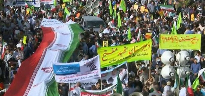 وخرج أبناء الشعب الإيراني في مسيرات يوم 22 بهمن (11 فبراير) ليؤكدوا ثباتهم جيلا بعد جيل على المبادئ السامية التي رفعت الثورة الإسلامية المباركة لوائها وبعثت الأمل في نفوس كل المستضعفين والمظلومين في العالم.انتهى