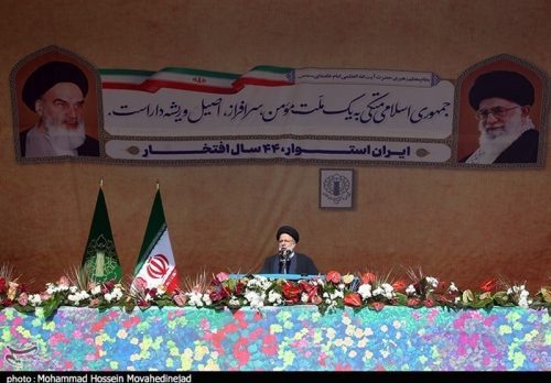 وقال رئيسي ان يوم انتصار الثورة الاسلامية هو يوم بداية الاستقلال ونهاية الاستبداد وتحقق إرادة الشعب الايراني العظيم، مشيرا إلى ان اليوم حضر الشعب إلى الساحات والميادين ليجدد البيعة للإمام والقائد والشهداء ولثوابت الثورة ومبادئها.