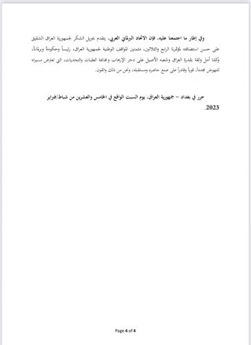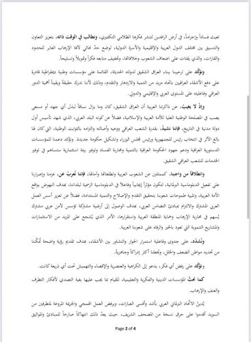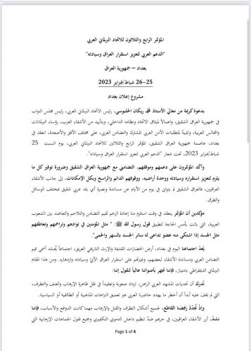 النص الكامل لاعلان بغداد الختامي للمؤتمر الـ34 للاتحاد البرلماني العربي